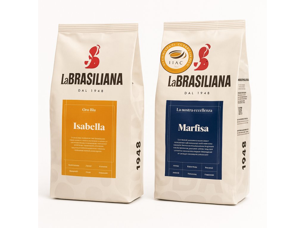 La Brasiliana Isabella káva nádherně plné chuti s velmi pěknou cremou a středním obsahem kofeinu. Směs ze 70% tvoří zrna Arabic a ze 30% zrna odrůd Robusty,